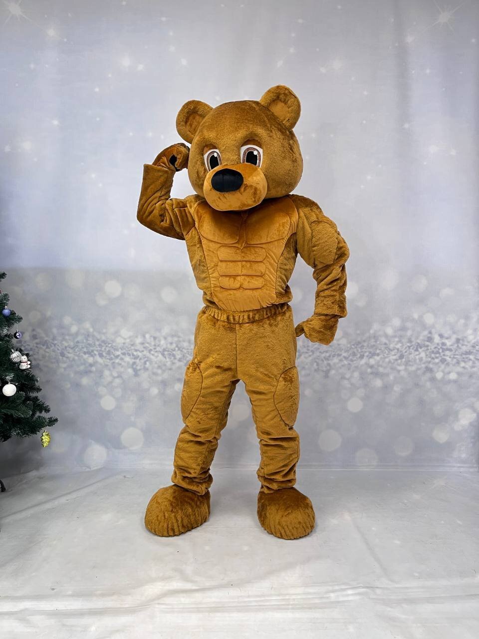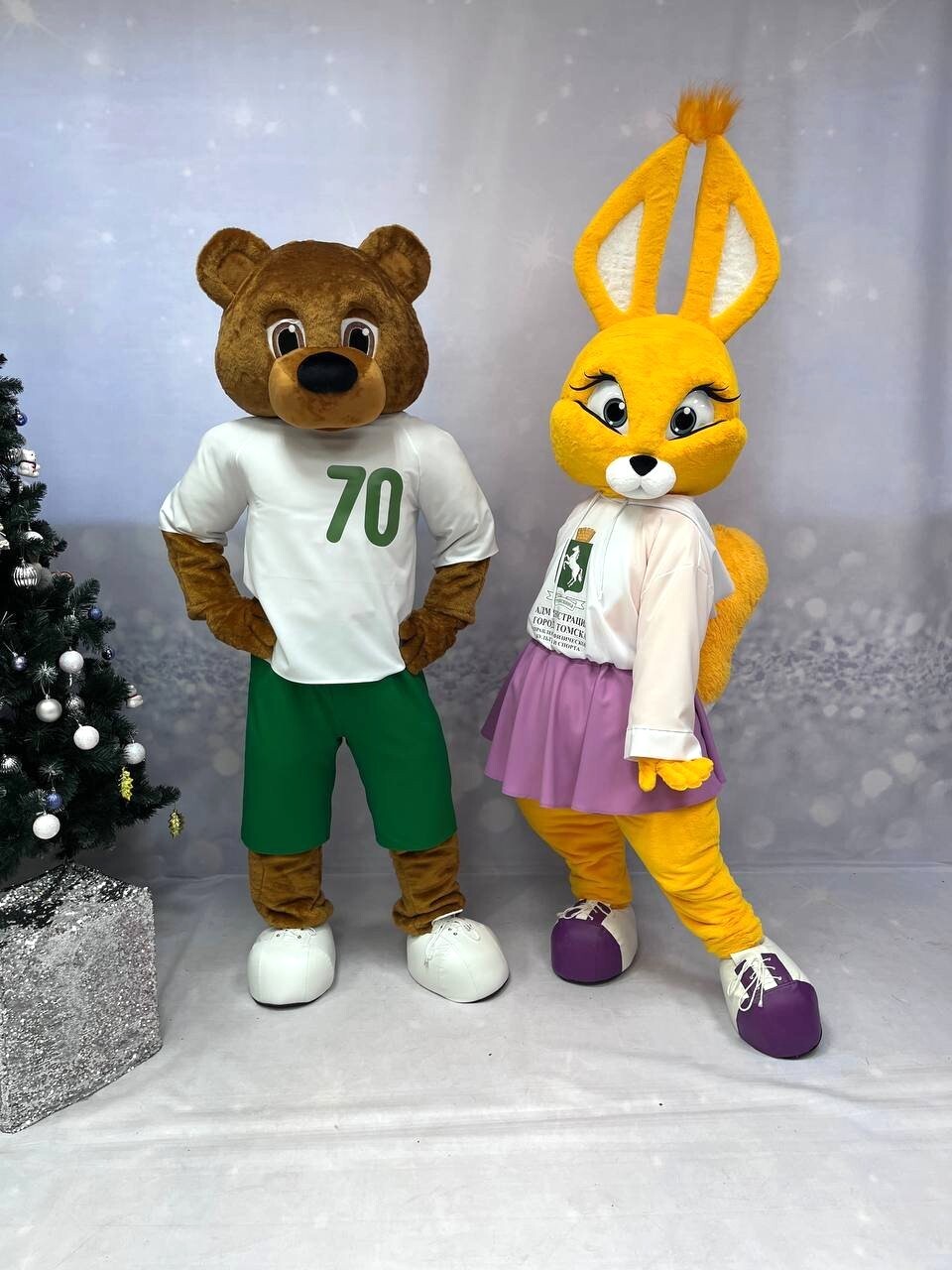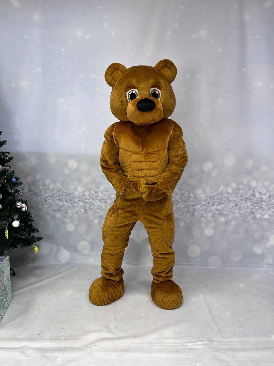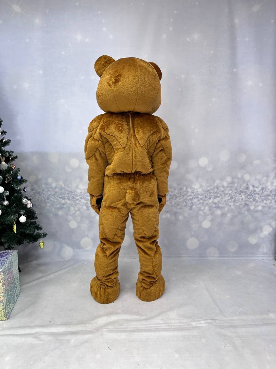 Комплектация медведя: голова, кофта с имитацией мышц, штаны с имитацией мышц, перчатки, обувь из кож. зама., чехлы на обувь, наряд Комплектация белки: голова, тело-комбинезон с хвостом, перчатки, обувь из кож.зама.