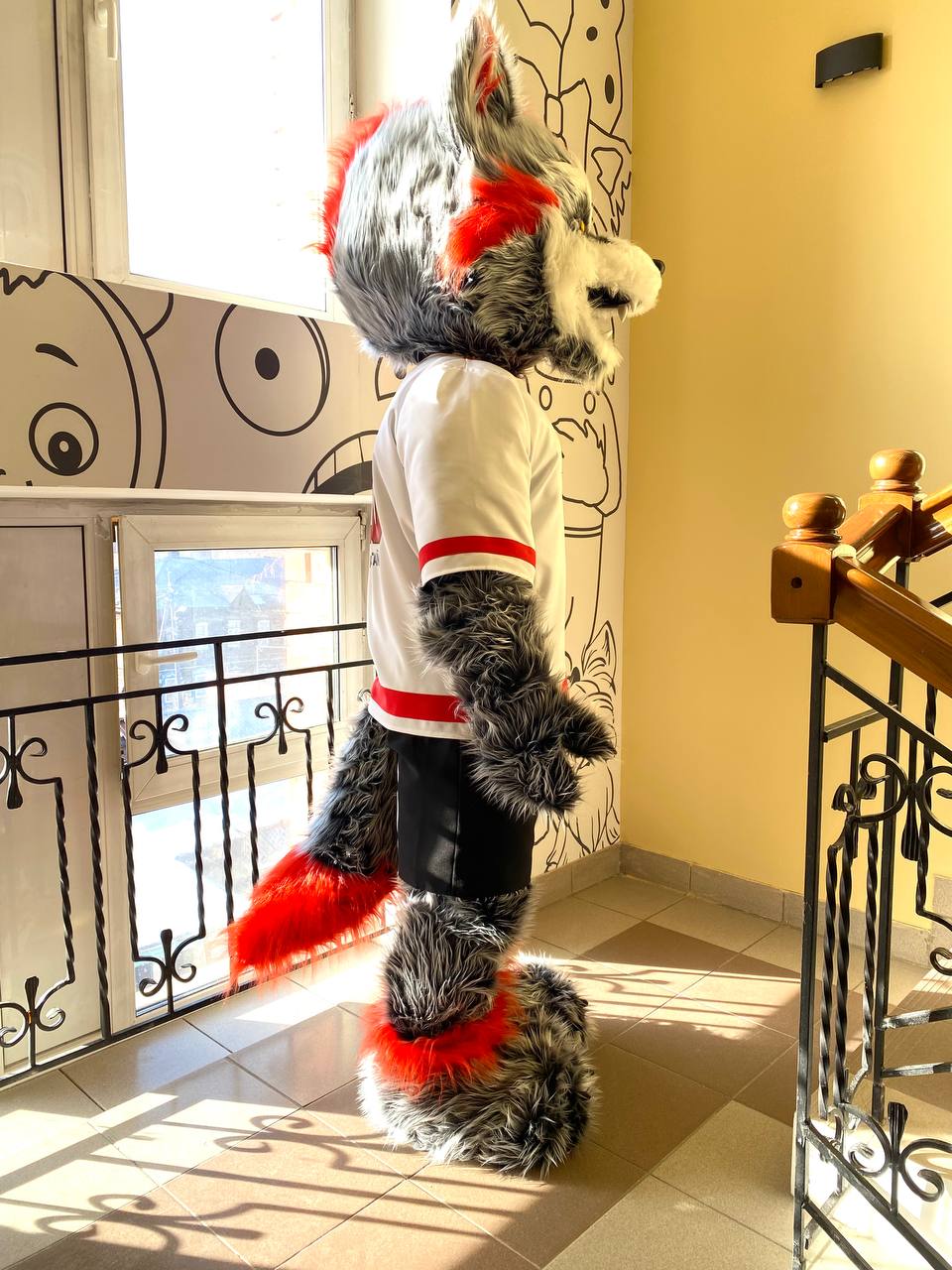 Комплектация: голова, тело-комбинезон, съемный хвост, перчатки, обувь из кож. зама, чехлы на обувь, два наряда: олимпийка со спортивными штанами, футболка с шортами