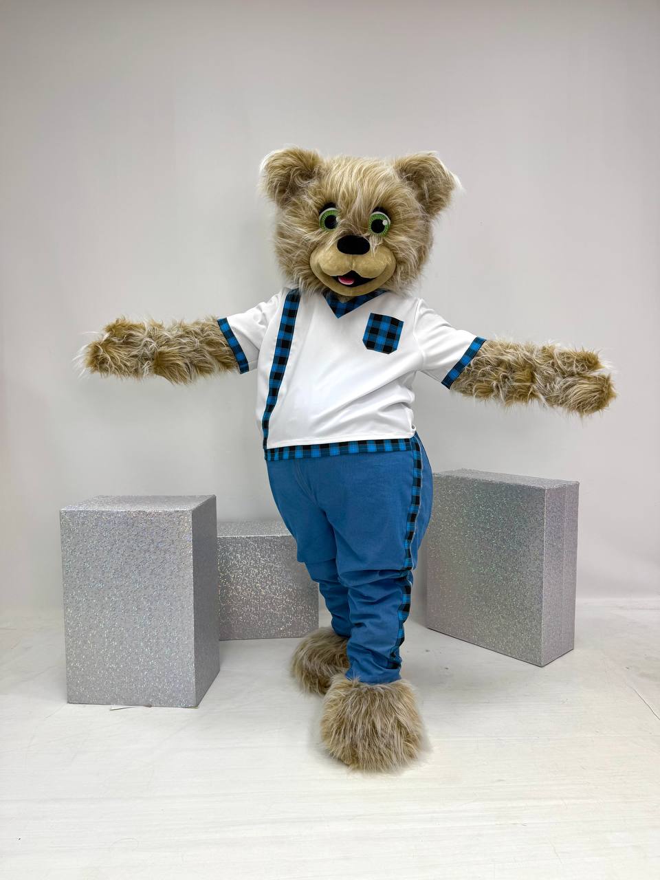 ОСОБЕННОСТЬ: Этот комбинезон универсален - подходит для любого персонажа: зайки, мишки или котика. Капюшон регулируется под размер и расстояние ушек, так что сидит идеально. Цвет травки можем менять по согласованию с клиентом.